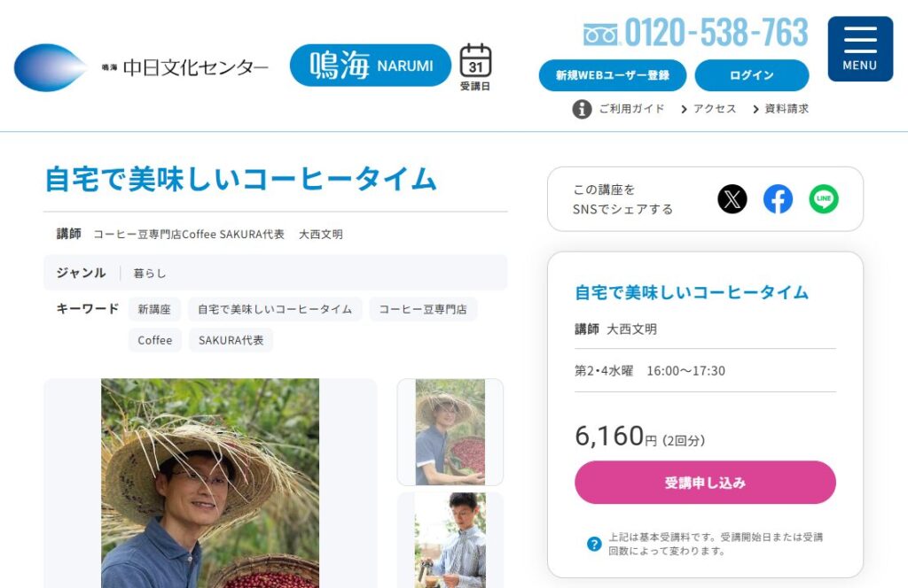 鳴海中日文化センターでコーヒーセミナー開催【2026年5月】